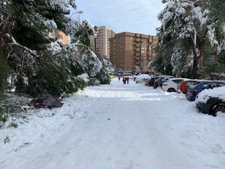 何しろ、めったにない自然からの贈り物です。マドリッドに除雪車があっても数台でしょうから、まったくのお手上げ状態です。スパイクタイヤやチェーンなんて誰も持っていません。持っていても装備の仕方が、わかんないんじゃないかと思われます。50年ぶりと来ては、そんなことにお金を使用するより,家で寝てた方がいいに決まっています。コロナの感染もこんな状態で、足止めを食らった、ことで減少するかもしれません。ブログを書いてる真っ最中にまた電話が鳴り響いています。電話やメッセージをくれる患者さんは、いい方で、そのままキャンセルが常識のスペイン、今日は遊びだなーのあきらめ予感で、1月11日の月曜日がスタートしたのでした。